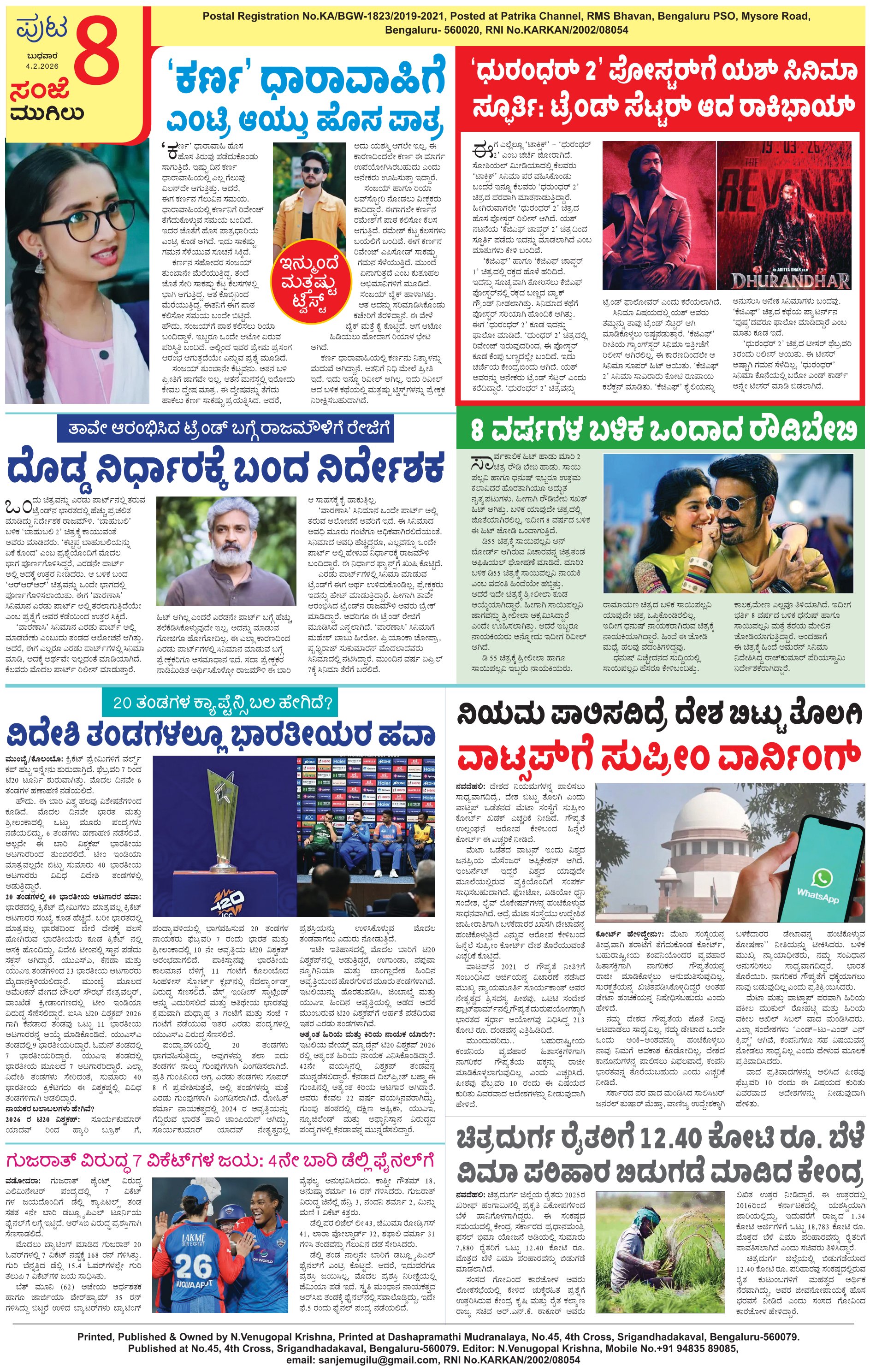 ಸಂಜೆ ಮುಗಿಲು 04-February-2026 epaper Page: 8 February 04, 2026 << First << 8 >> Last >> Page 1Page 2Page 3Page 4Page 5Page 6Page 7Page 8 × ಸಂಜೆ ಮುಗಿಲು 04-February-2026 epaper 00010002000300040005000600070008 Full PDF << First << 8 >> Last >> 00010002000300040005000600070008 0008