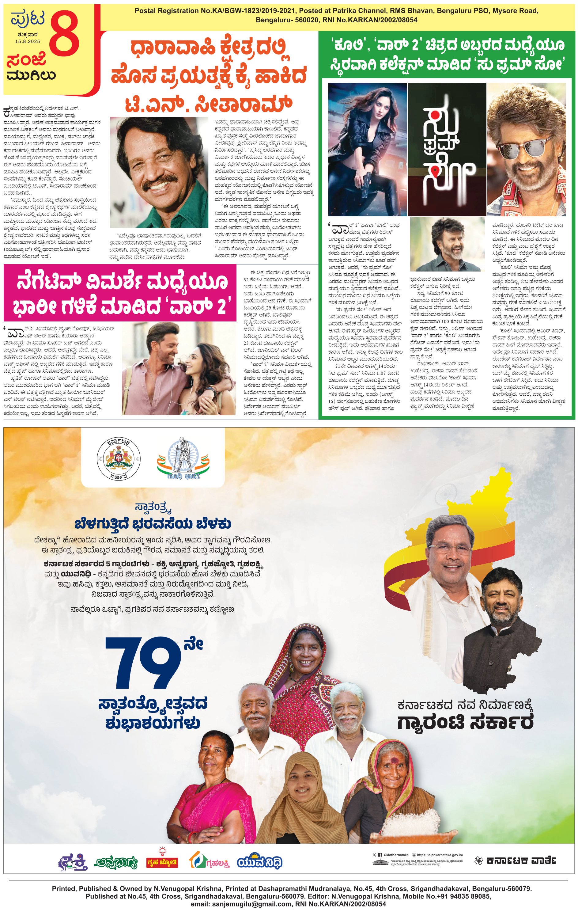 ಸಂಜೆ ಮುಗಿಲು 15-August-2025 epaper Page: 8 August 15, 2025 << First << 8 >> Last >> Page 1Page 2Page 3Page 4Page 5Page 6Page 7Page 8 × ಸಂಜೆ ಮುಗಿಲು 15-August-2025 epaper 01234567 Full PDF << First << 8 >> Last >> 01234567 7
