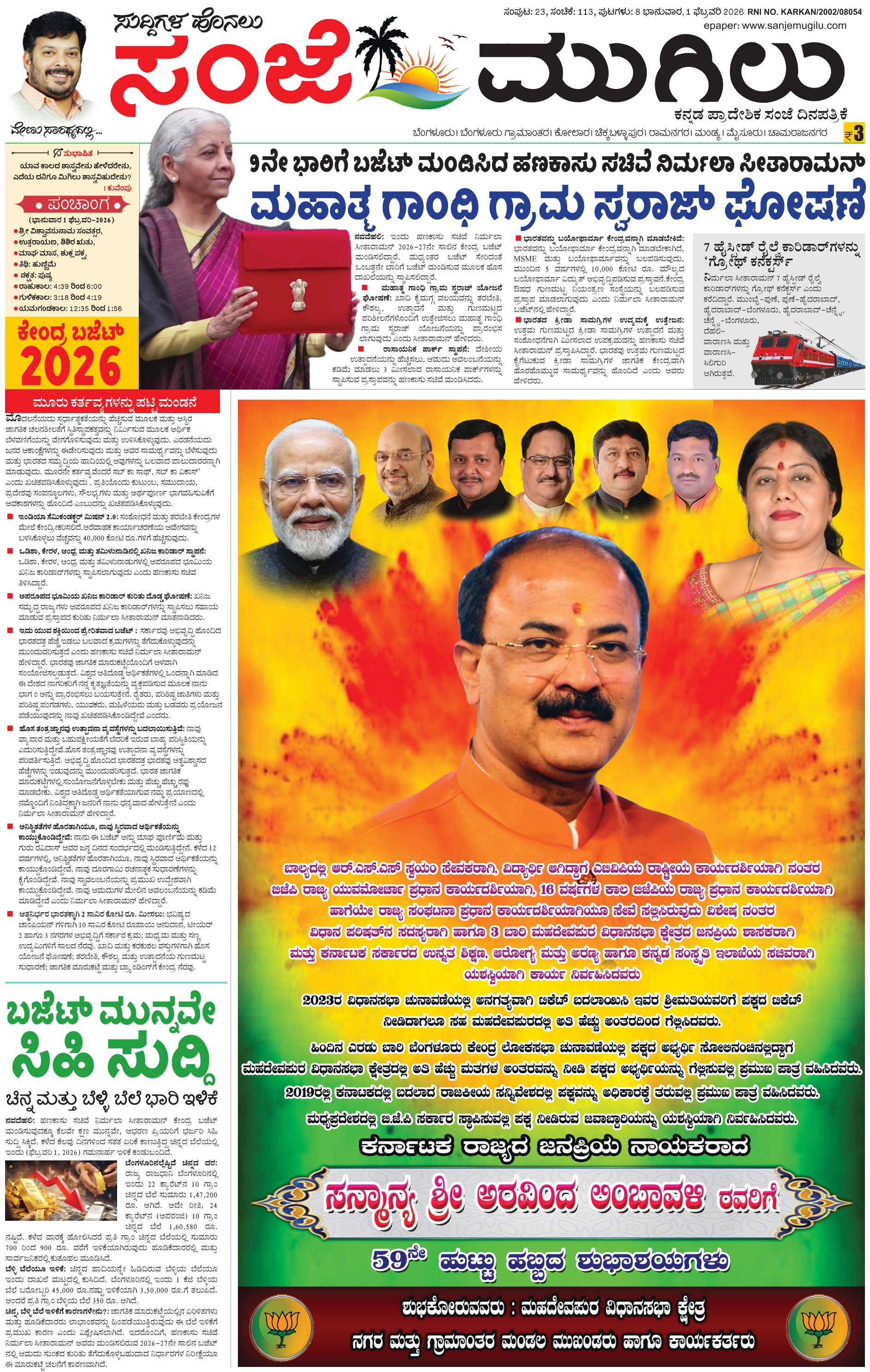ಸಂಜೆ ಮುಗಿಲು 01-February-2026 epaper